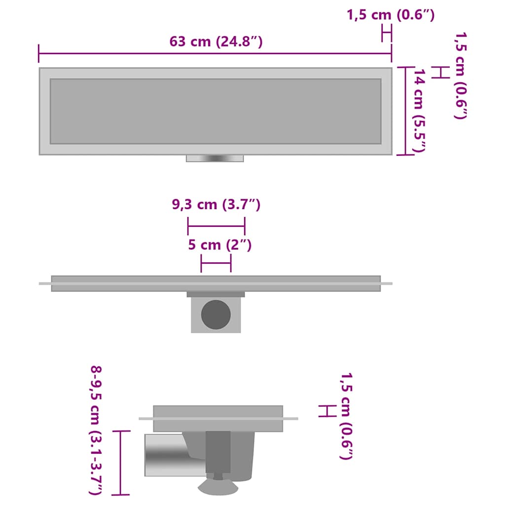 - Abfluss-Größe: 60 x 11 cm (L x B)